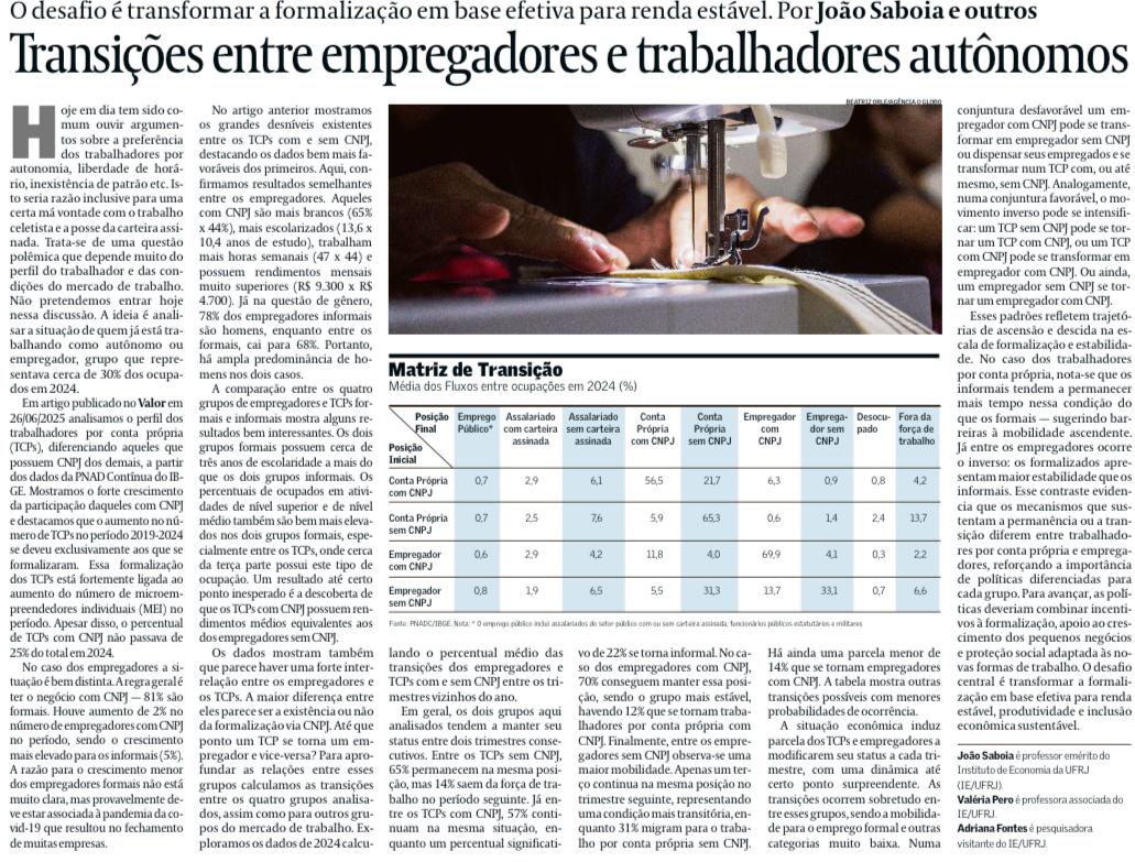Professores: João Saboia (IE-UFRJ); Tiago Magaldi (UFRJ) e François Roubaud (UFRJ)
